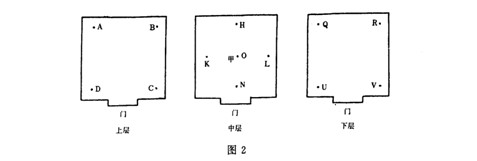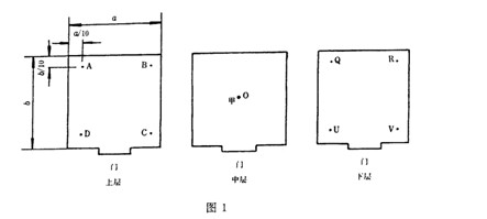 測試點的數量與工作容積大小的關系為:a、工作室容積不大于1立方米時,測試點為9個,布放位置如圖1所示;